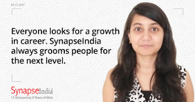 Everyone in the organization works together as a team to achieve a common goal i.e. providing quality services with complete customer satisfaction. SynapseIndia careers provide ample of growth opportunities for everyone.